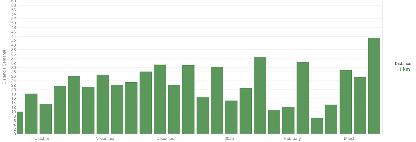 Esta foi a minha maior semana dos últimos 6 meses (pelo menos). Faltam agora 6 semanas para a Meia Maratona da Europa, em Aveiro, e o foco passa a ser aumentar gradualmente o volume semanal e, principalmente, ganhar mais consistência nas corridas longas.